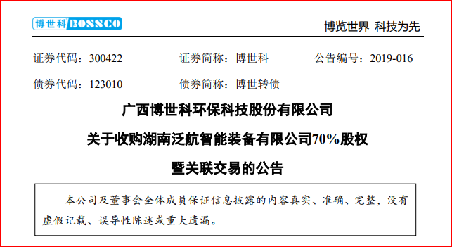日前,廣西博世科環(huán)??萍脊煞萦邢薰?簡稱“博世科”)發(fā)布公告,公司擬收購西藏廣博環(huán)保投資有限責(zé)任公司持有的湖南泛航智能裝備有限公司(簡稱“泛航裝備”)70%股權(quán)。本次收購?fù)瓿珊?,泛航裝備將成為公司的控股子公司。 公告顯示,標(biāo)的公司泛航裝備成立于201...