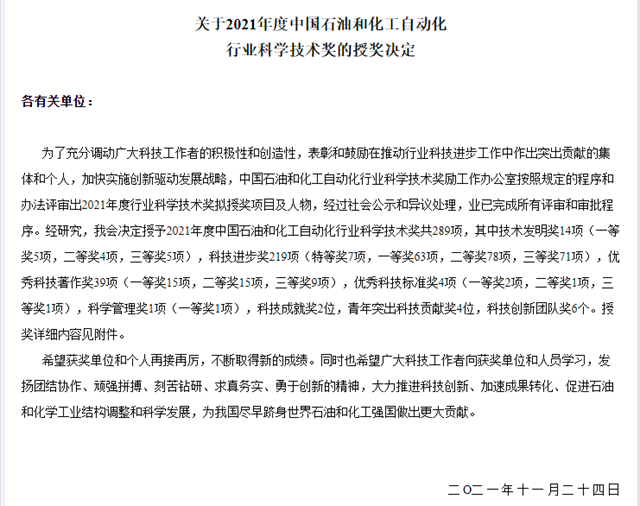 近日,由中國石油西南油氣田分公司天然氣研究院主持,四方光電參與的“天然氣中硫化物光譜檢測技術研究及應用”項目榮獲2021年度中國石油與化工自動化行業(yè)科技進步一等獎。中國石油與化工自動化行業(yè)科學技術獎是經(jīng)國家科學技術部批準(國科學社證字第0109號)設立的,主要評選在石油與化工...
